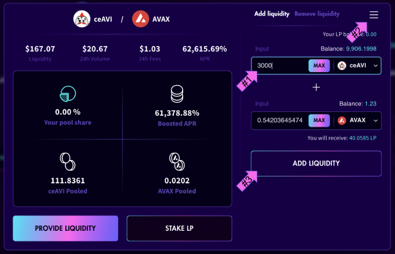 Note that to receive the maximum APR displayed, in addition to providing liquidity, users must stake their LP tokens into the farm.