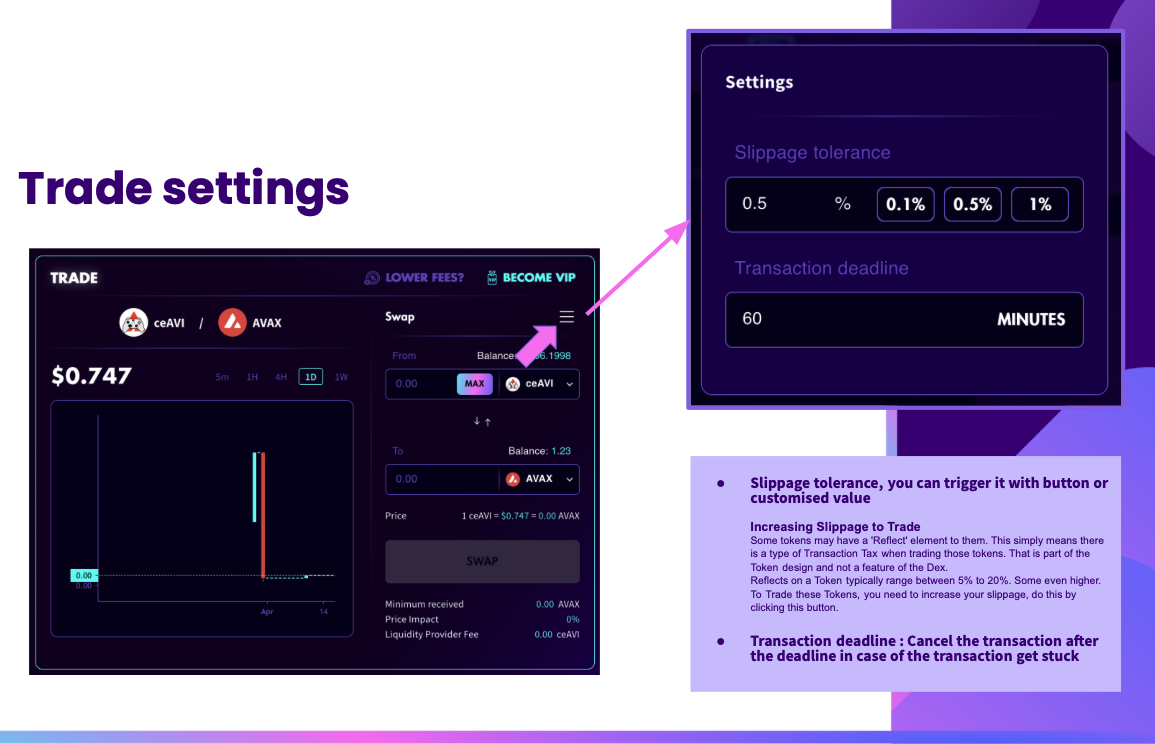 1- After accessing the "Trade" view on Colony's DEX, users can perform the following actions: