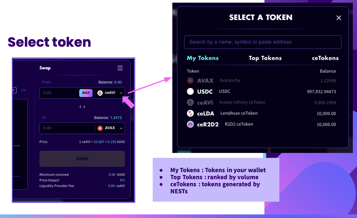 2- After selecting the desired tokens, the user can initiate the trade. Here are the steps: